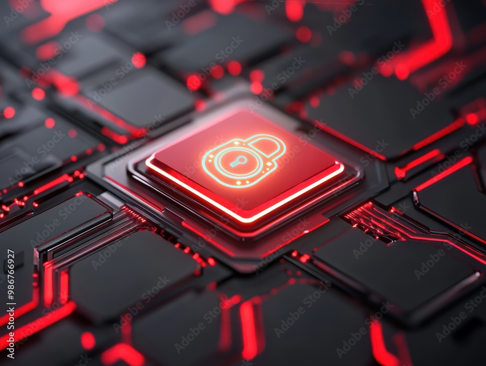 The watermark will not be included on Wall mural.: Futuristic 3d illustration of a cyber security cube surrounded by blue encryption layers and digital