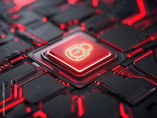 Wall mural futuristic 3d illustration of a cyber security cube surrounded by blue encryption layers and digital - Wall murals Wall mural futuristic 3d illustration of a cyber security cube surrounded by blue encryption layers and digital - Wall murals