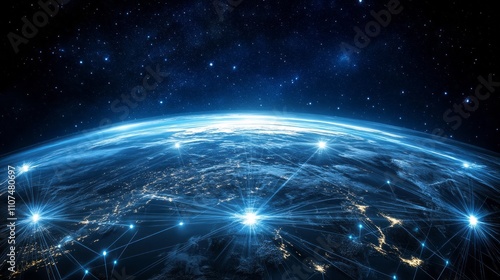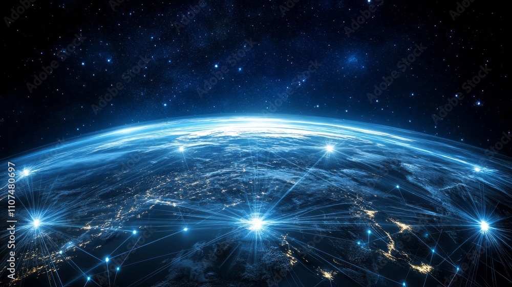 Wall mural futuristic 3d world globe showcasing data exchange and global network connections with advanced tech