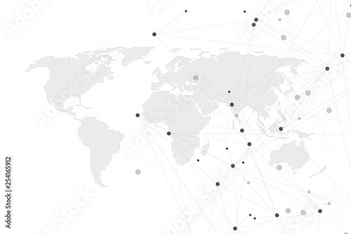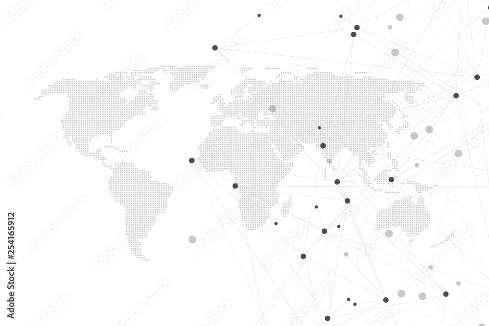 Wall mural : Futuristic abstract background blockchain technology - global internet network connection - peer to pe