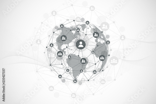 Wall mural : Futuristic abstract background blockchain technology - global internet network connection - peer to pe