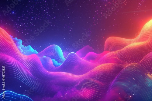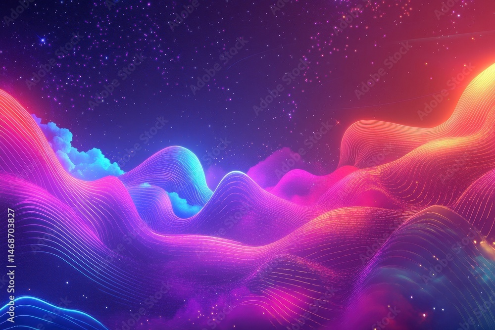 The watermark will not be included on Wall mural.: Futuristic abstract background featuring vibrant neon lines in a dynamic wave pattern, abstract futu