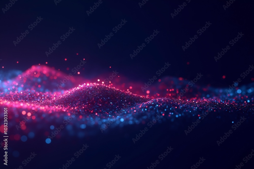 The watermark will not be included on Wall mural.: Futuristic abstract background with glowing particles and waves in dark atmosphere -