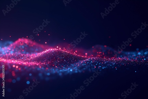 Wall mural futuristic abstract background with glowing particles and waves in dark atmosphere.