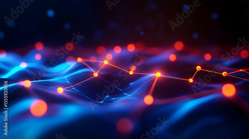 The watermark will not be included on Wall mural.: Futuristic abstract design featuring glowing nodes and waves, representing digital connections in a
