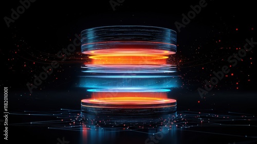 The watermark will not be included on Wall mural.: Futuristic abstract digital design with glowing elements -