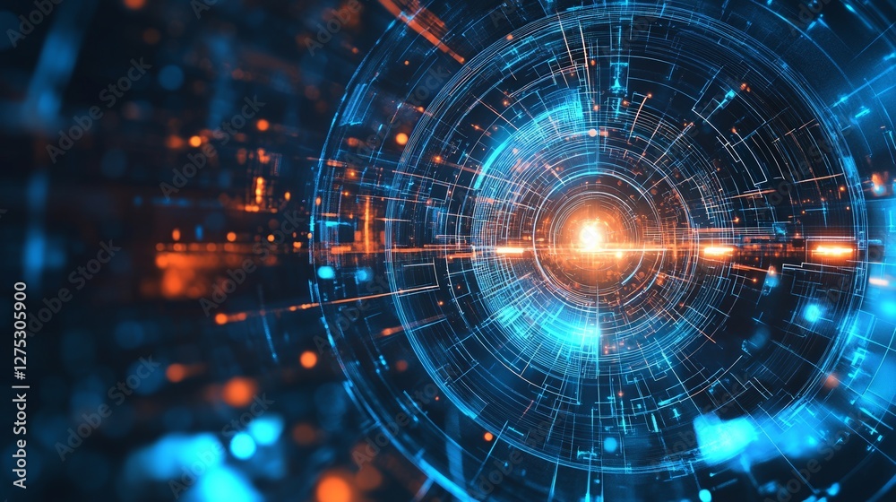Wall mural : Futuristic abstract digital light patterns in circular motion