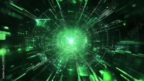 The watermark will not be included on Wall mural.: Futuristic abstract geometric shapes with digital data grid and glowing technology elements on a dar