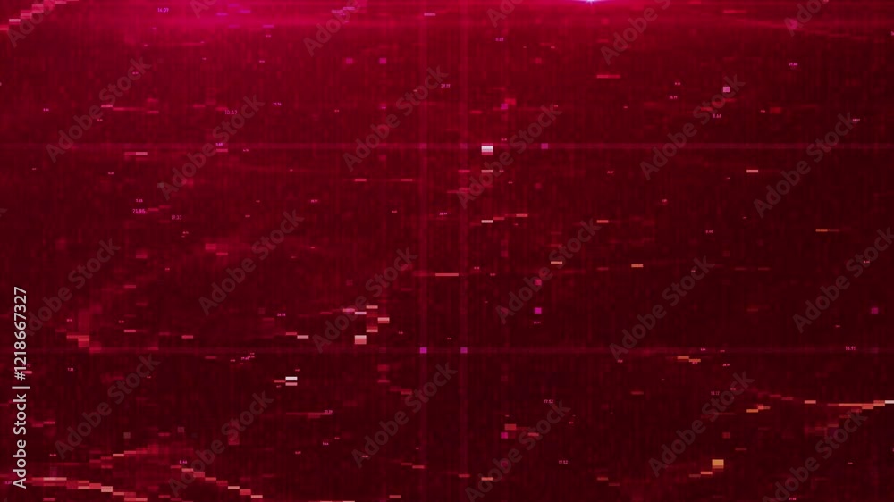 Wall mural futuristic abstract glitch screen with vhs noise and fractal waves: red tech background with numbers