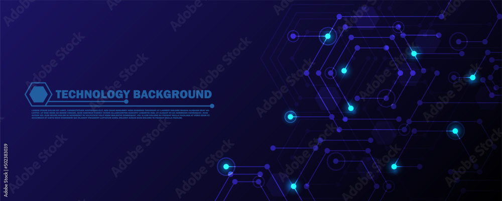 Wall mural : Futuristic abstract lines and dots connect the background - digital data connection technology and bi