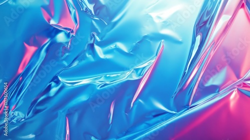 Wall mural : Futuristic abstract technology background featuring metallic blue foil texture with reflective surfa