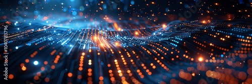 Wall mural futuristic abstract technology background with digital data and circuit board elements