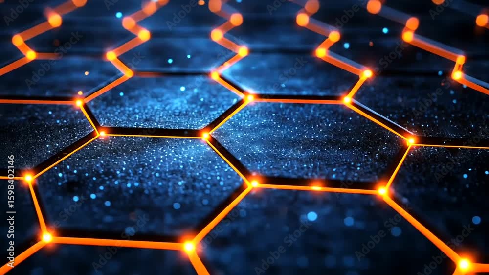 Wall mural : Futuristic abstract technology background with glowing hexagonal grid and data connections