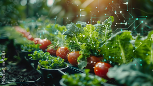 Wall mural futuristic agriculture concept with smart technology analysis report on digital screen artistic natu - Wall murals Wall mural futuristic agriculture concept with smart technology analysis report on digital screen artistic natu - Wall murals