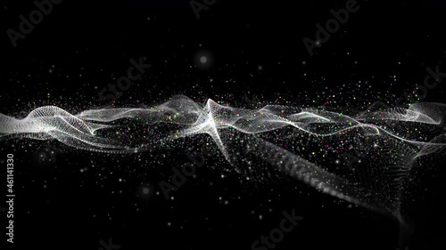 Wall mural futuristic animation with gray wave object and colorful glitter particles in slow motion, 4096x2304  - Wall murals Wall mural futuristic animation with gray wave object and colorful glitter particles in slow motion, 4096x2304 - Wall murals