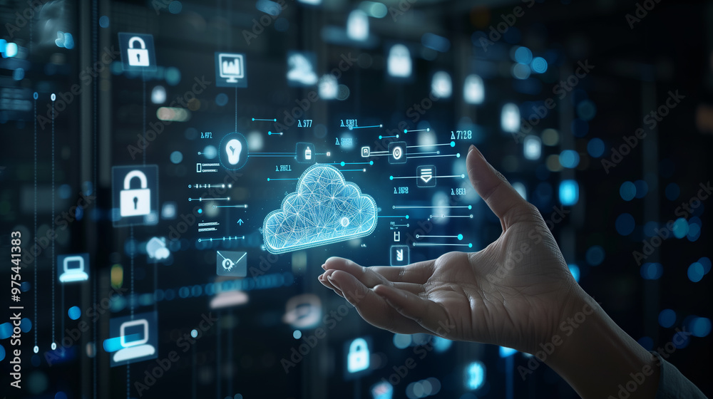 Wall mural futuristic artificial intelligence based cloud database management system technology visualization t - Wall murals Wall mural futuristic artificial intelligence based cloud database management system technology visualization t - Wall murals