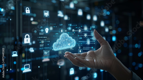 The watermark will not be included on Wall mural.: Futuristic artificial intelligence based cloud database management system technology visualization t