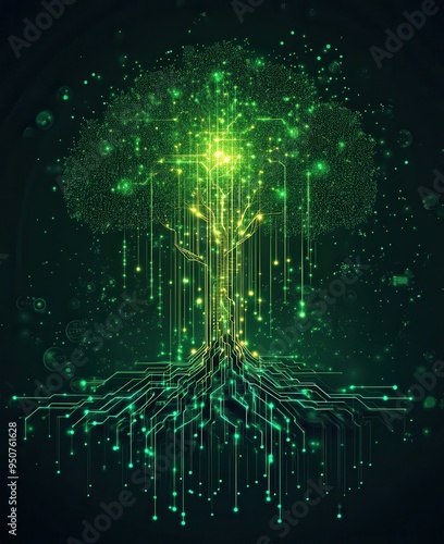 Wall mural futuristic artificial intelligence tree blending technology and nature with glowing green circuits a - Wall murals Wall mural futuristic artificial intelligence tree blending technology and nature with glowing green circuits a - Wall murals