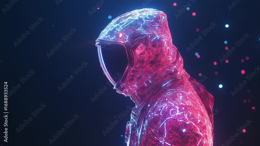 The watermark will not be included on Wall mural.: Futuristic astronaut exploring deep space in glowing spacesuit