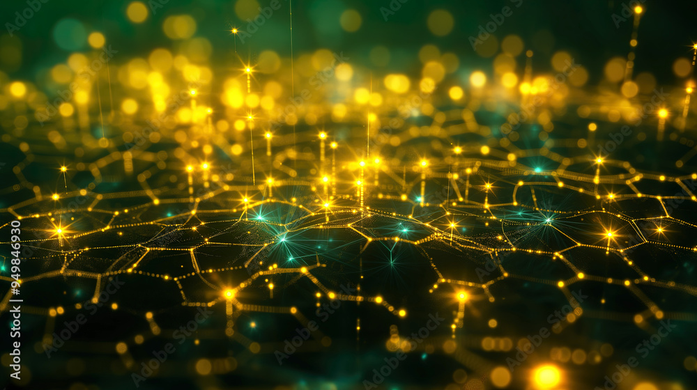 Wall mural futuristic background of hexagonal grid with glowing lines