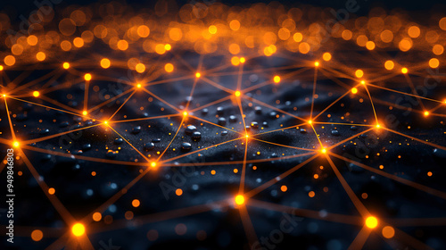 The watermark will not be included on Wall mural.: Futuristic background of hexagonal grid with glowing lines