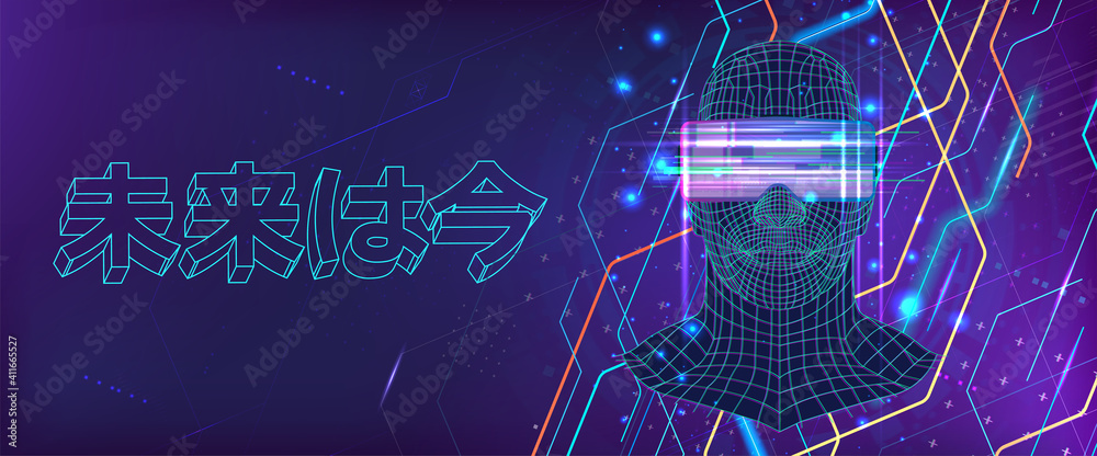 Wall mural futuristic banner ai and vr technologies. self-learning program with artificial intelligence. ai in