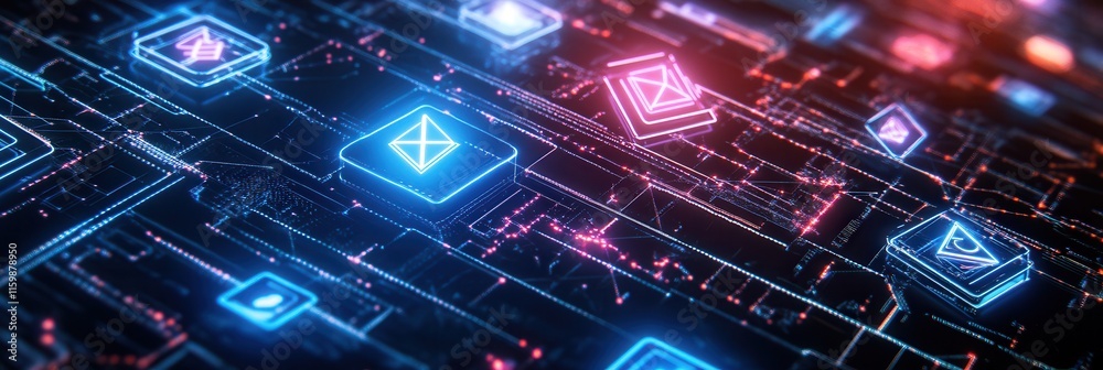 Wall mural futuristic blockchain network visualization, interconnected digital nodes representing cryptocurrenc - Wall murals Wall mural futuristic blockchain network visualization, interconnected digital nodes representing cryptocurrenc - Wall murals