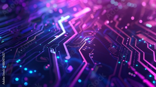 Wall mural : Futuristic blue and purple technology background with abstract circuit board patterns, ideal for hig