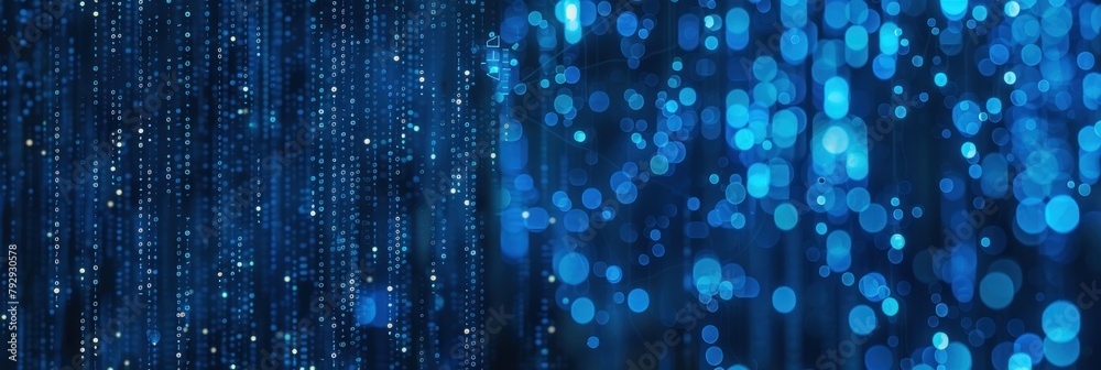 Wall mural futuristic blue binary code data stream on computer monitor for background