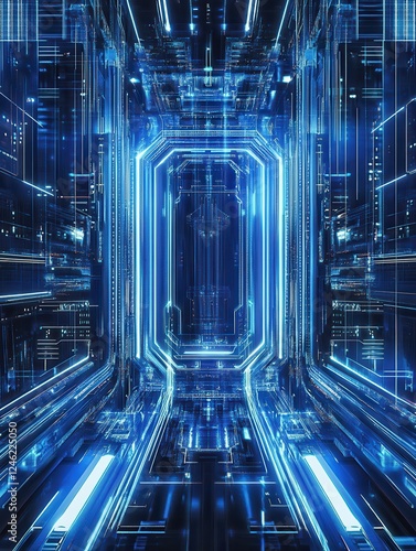 Wall mural futuristic blue digital background with glowing lines and patterns, ideal for sci-fi and tech themes