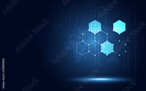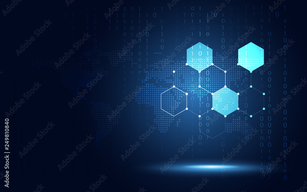 Wall mural futuristic blue hexagon honeycomb abstract technology background. artificial intelligence digital tr