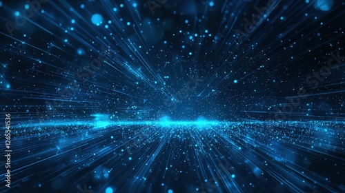 Wall mural futuristic blue light burst abstract background with particle showers in a dynamic space environment