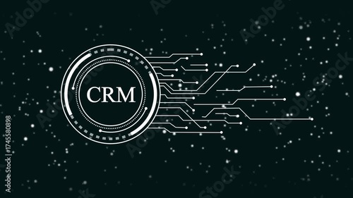Wall mural : Futuristic c r m technology interface with glowing digital network connections and abstract data poi