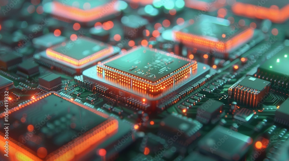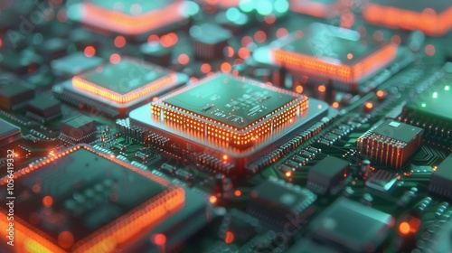 Wall mural : Futuristic circuit board design: 3d rendering of server processing with vibrant color background