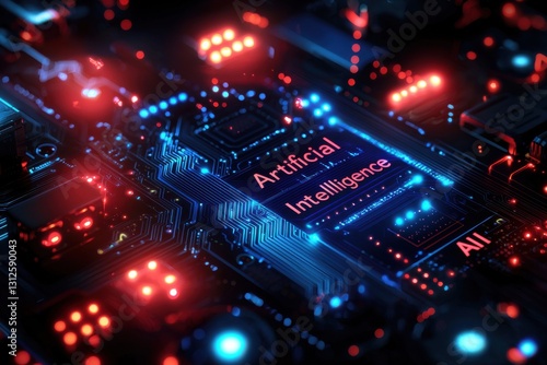 Futuristic circuit board with artificial intelligence highlighted in glowing colorsWall mural