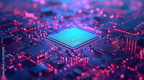 Futuristic circuit board with glowing lights and microprocessor designWall mural