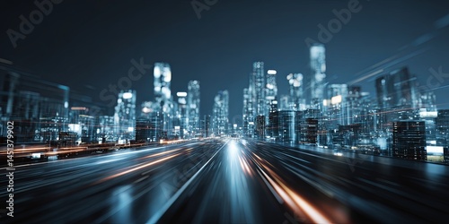Wall mural : Futuristic cityscape with data streams representing digital transformation and technology integratio