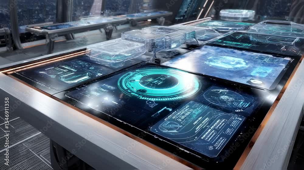 Wall mural futuristic command center showing planet earth and various data analysis on transparent screens, hig - Wall murals Wall mural futuristic command center showing planet earth and various data analysis on transparent screens, hig - Wall murals