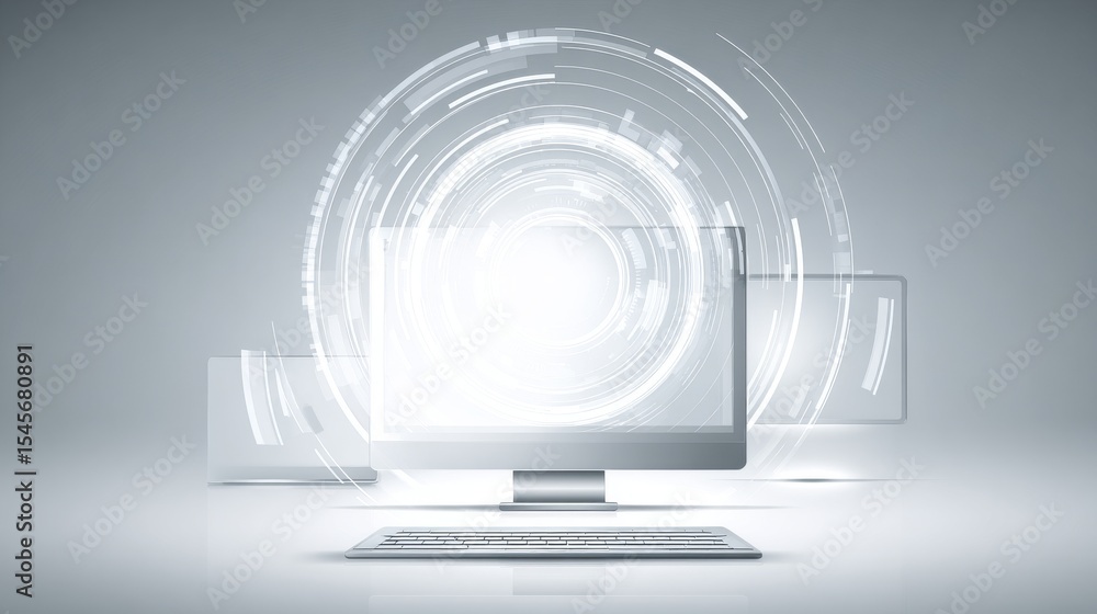 Wall mural futuristic computer display with transparent screens and glowing effects. - Wall murals Wall mural futuristic computer display with transparent screens and glowing effects. - Wall murals