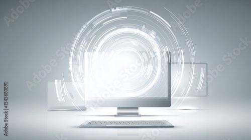 The watermark will not be included on Wall mural.: Futuristic computer display with transparent screens and glowing effects -