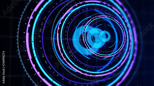 Wall mural futuristic control mechanisms on net background.scientific futuristic interface. round blue abstract