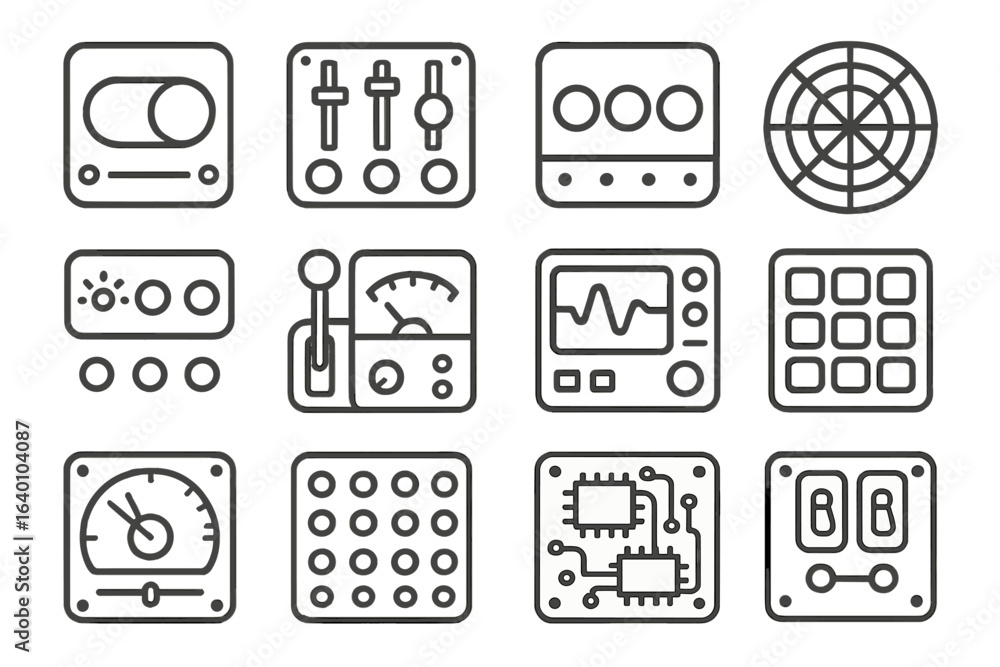 The watermark will not be included on Wall mural.: Futuristic control panel icons with dashboard and circuit elements