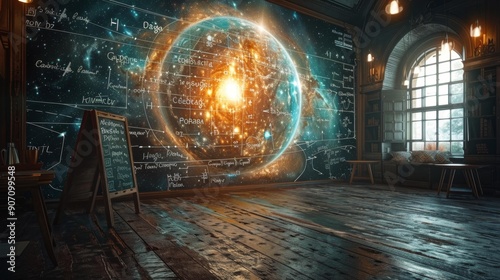 Wall mural futuristic cosmic classroom with detailed space formulas - generative ai - Wall murals Wall mural futuristic cosmic classroom with detailed space formulas - generative ai - Wall murals