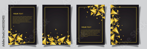 The watermark will not be included on Wall mural.: Futuristic cover set collection vector with golden triangle abstract element light effect