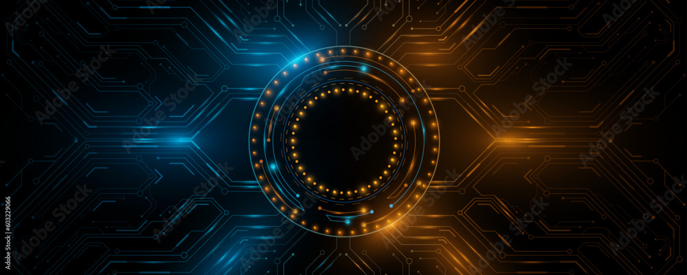 Wall mural futuristic cpu panel with glowing hud circle. sci-fi board for your technology design. vector illust