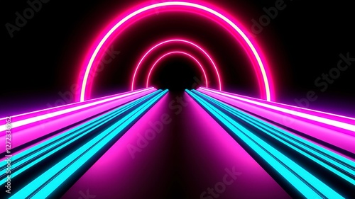 Wall mural futuristic cyber environment with secure nodes neon tunnel digital art abstract aerial view