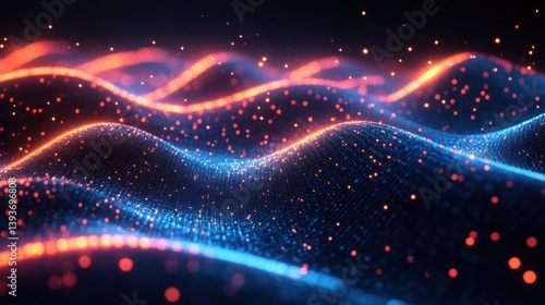 Wall mural futuristic cyberpunk digital network abstract visualization with glowing blue neon lines and wave pa - Wall murals Wall mural futuristic cyberpunk digital network abstract visualization with glowing blue neon lines and wave pa - Wall murals