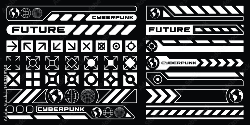 Wall mural : Futuristic cyberpunk interface element, technology graphic vector, user interface set - vector graphi