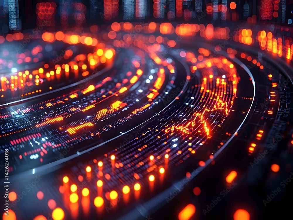 Wall mural : Futuristic data analytics with glowing financial graphs