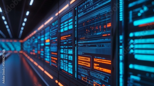 The watermark will not be included on Wall mural.: Futuristic data display in a tech environment